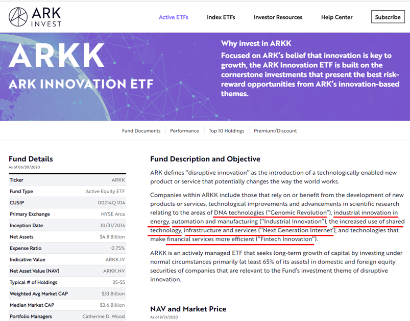 Alpha-seeking ETF에서 가장 높은 시가총액을 가지고 있는 'ARKK', 이들이 운용하고 있는 알파를 찾는 아이디어를 통해, 우리가 앞으로 계속 어떤 기업에 관심을 가져야 할 지 윤곽이 잡혀간다.